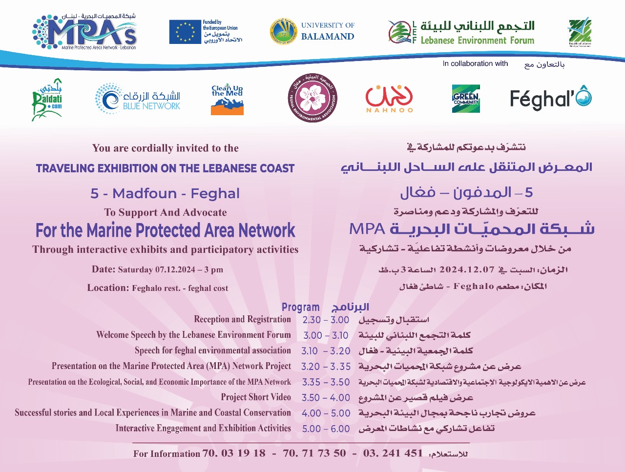 نظم التجمع اللبناني للبيئة ندوة ومعرضاً متنقلاً حول المحميات البحرية في النادي اللبناني للسيارات والسياحة (ATCL) جونيه، برعاية بلدية جونيه، للتعرف على ودعم ومناصرة “شبكة المحميات البحرية (MPAs)”.